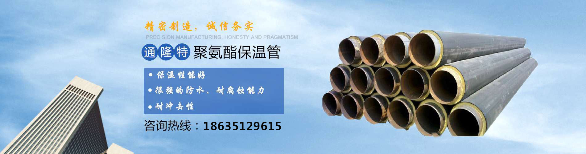 山西通隆特保溫材料有限公司是集生產(chǎn)、銷(xiāo)售、施工、服務(wù)于一體的現(xiàn)代化企業(yè),通隆特保溫材料廠(chǎng)址位于太原市清徐縣徐溝鎮(zhèn)南內(nèi)道村,辦公地址在太原市萬(wàn)柏林區(qū)奇天瑞鋼材南市場(chǎng)B區(qū)18號(hào),公司生產(chǎn):聚氨酯黑黃夾克保溫管(管中管)、聚氨酯預(yù)制直埋保溫管(玻璃鋼防腐)、聚氨酯瓦殼、玻璃棉制品、橡塑保溫材料;承攬管道防腐、外墻保溫、噴涂保溫、鐵皮保溫工程,公司技術(shù)力量好,擁有生產(chǎn)設(shè)備,生產(chǎn)工藝和質(zhì)量檢測(cè)手段,并且還注入了大批高技術(shù)...
